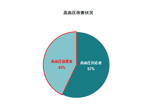 高血圧者のうち、今後高血圧を治療しようと思っている人は5割程に留まりました。また、定期的に通院していない人は高血圧者のうち66.7%、通院していない人のうち生活習慣の改善もしていない人は42.8%となりました。高血圧者のうち、通院も生活習慣の改善もしていない「高血圧放置者」は4割を超えることがわかりました。